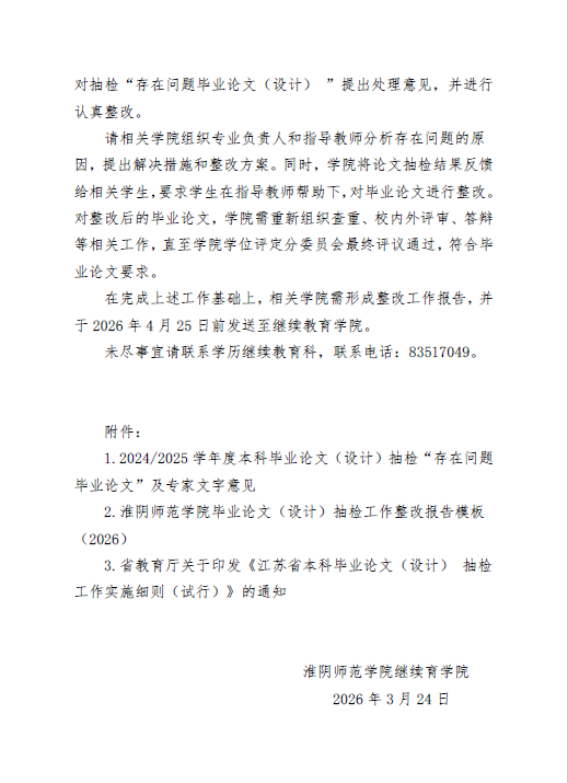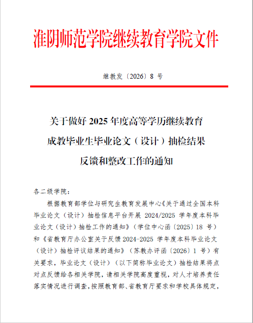 关于做好 2025 年度高等学历继续教育成教毕业生毕业论文(设计)抽检结果反馈和整改工作的通知